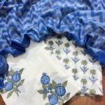 Blue & White Handblock Cotton suit with Kota doria dupatta