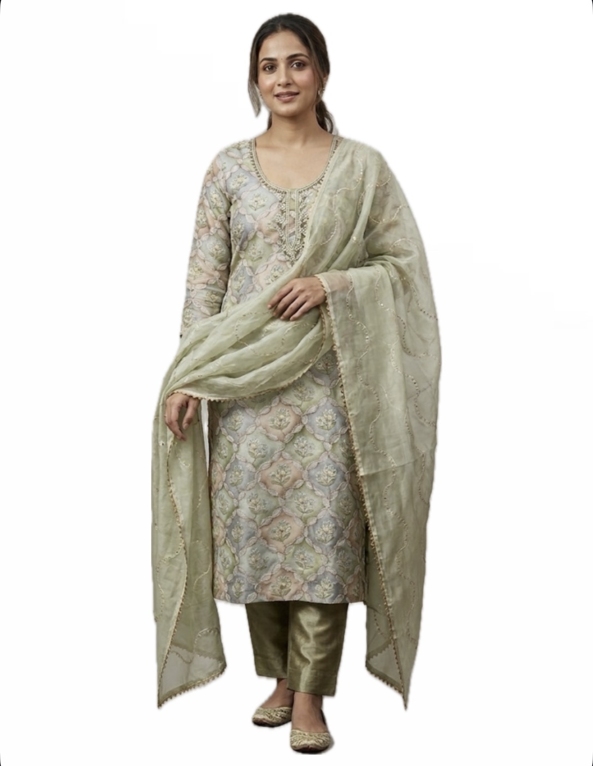 Be the first to review “Beautiful Green color unstitched Organza kurta with Dupatta and Santoon bottom” Cancel reply