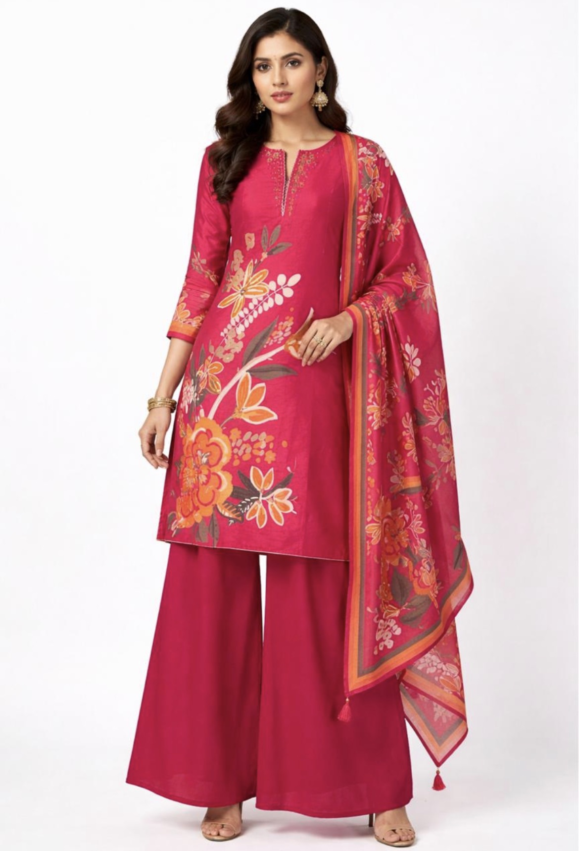 Be the first to review “Beautiful Ready to wear digitally printed Magenta kurta with plazzo and dupatta” Cancel reply