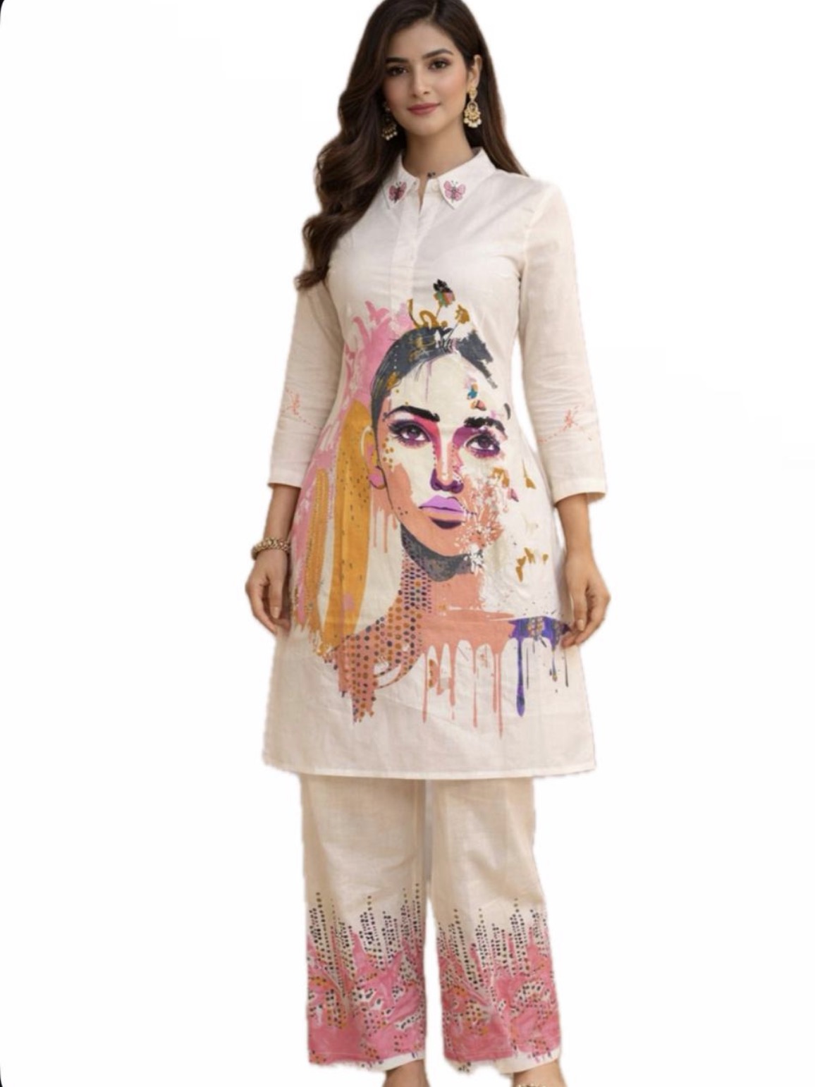 Be the first to review “Beautiful Ready to wear digitally printed White color Cord set” Cancel reply