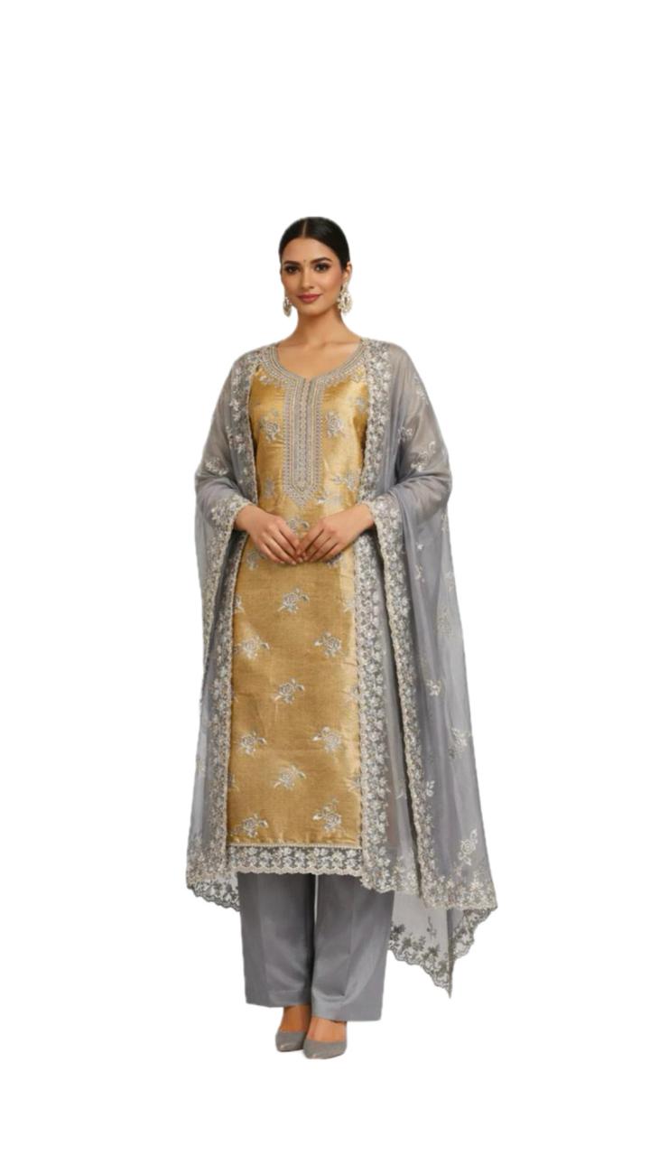 Golden Tissue fabric with grey dupatta